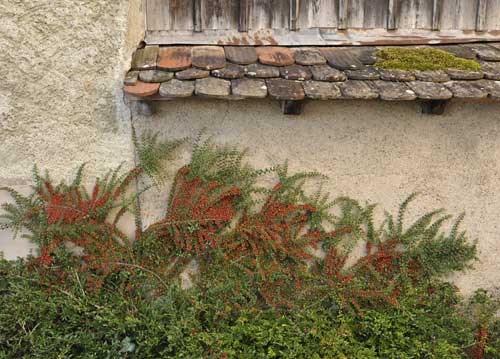 bildreich karten PK 961: mauergarten. Querformat. (Garten, Mauer, Ziegel, Kirchenmauer, Beeren) Mindestbestellmenge: 15 Karten (auch assortiert).