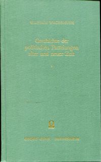 Wachsmuth, Wilhelm: Geschichte der politischen Parteiungen alter und neuer Zeit. 3 Bände. Hildesheim: Olms 1968. 8°. XXXVII, 1612 S., Leinen mit Kopffarbschnitt (gut erhalten) Band 1: Altertum; Band 2: Mittelalter; Band 3: Neue Zeit. Text Fraktur. Nachdruck der Ausgabe Braunschweig 1853-56. Wachsmuth ist außer als Kulturhistoriker auch als Geschichtstheoretiker von Bedeutung. Vor und später mit Johann Gustav Droysen war er einer der Wegbereiter für eine Historik. Zu Unrecht ist Wachsmuth heute weitgehend vergessen.